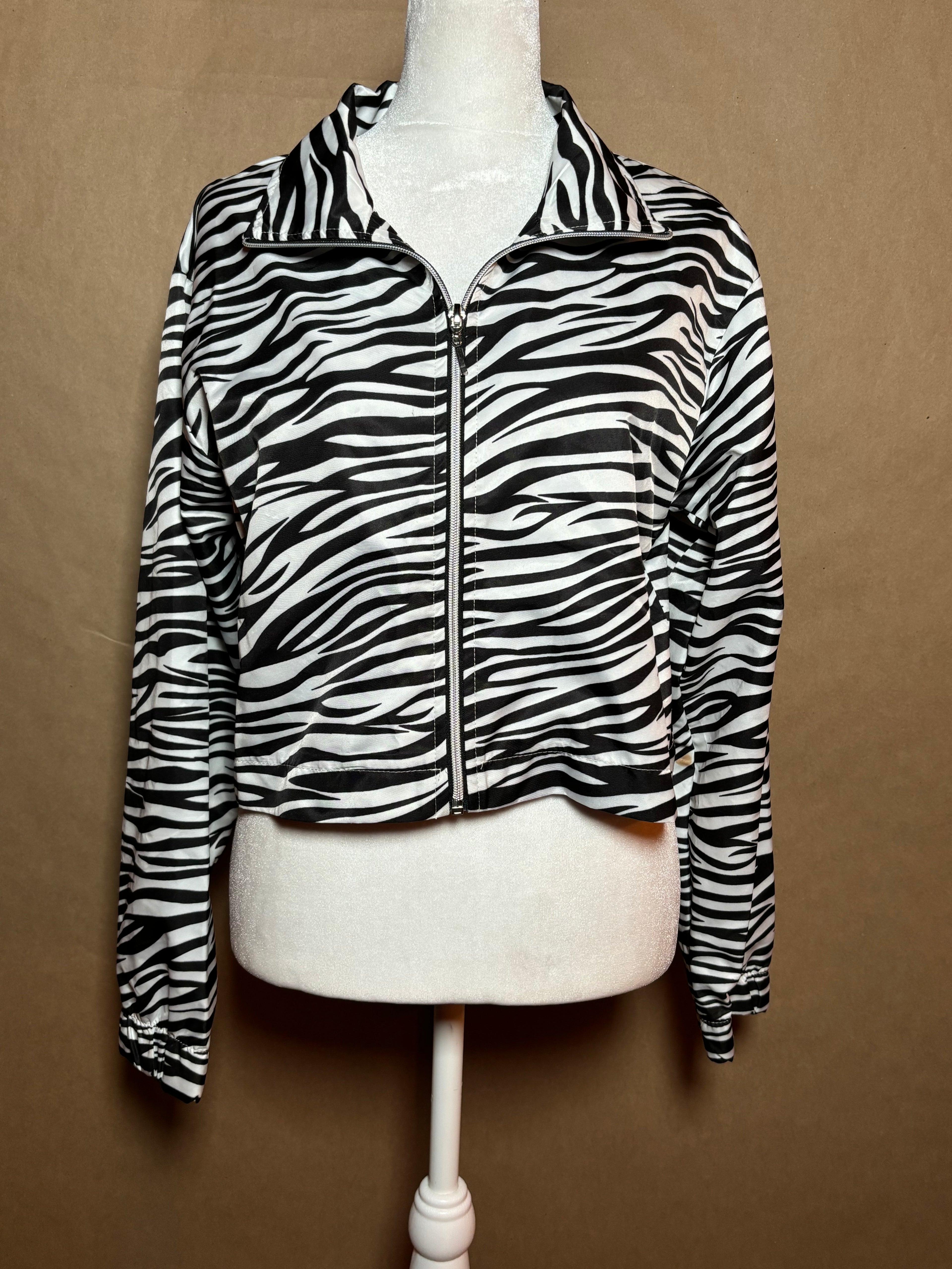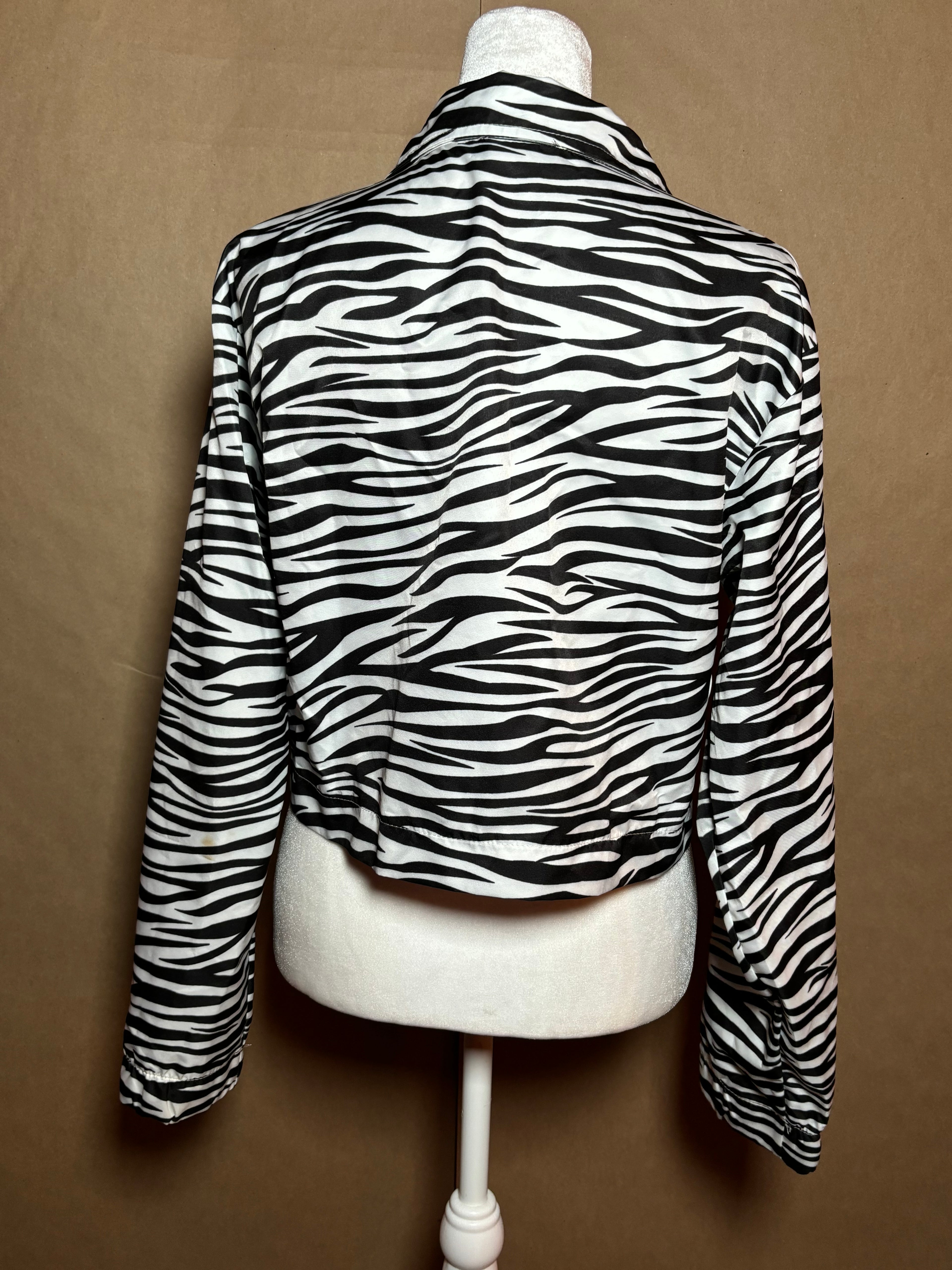 Pretty Little Thing size medium cropped zebra jacket GENTLY USED -