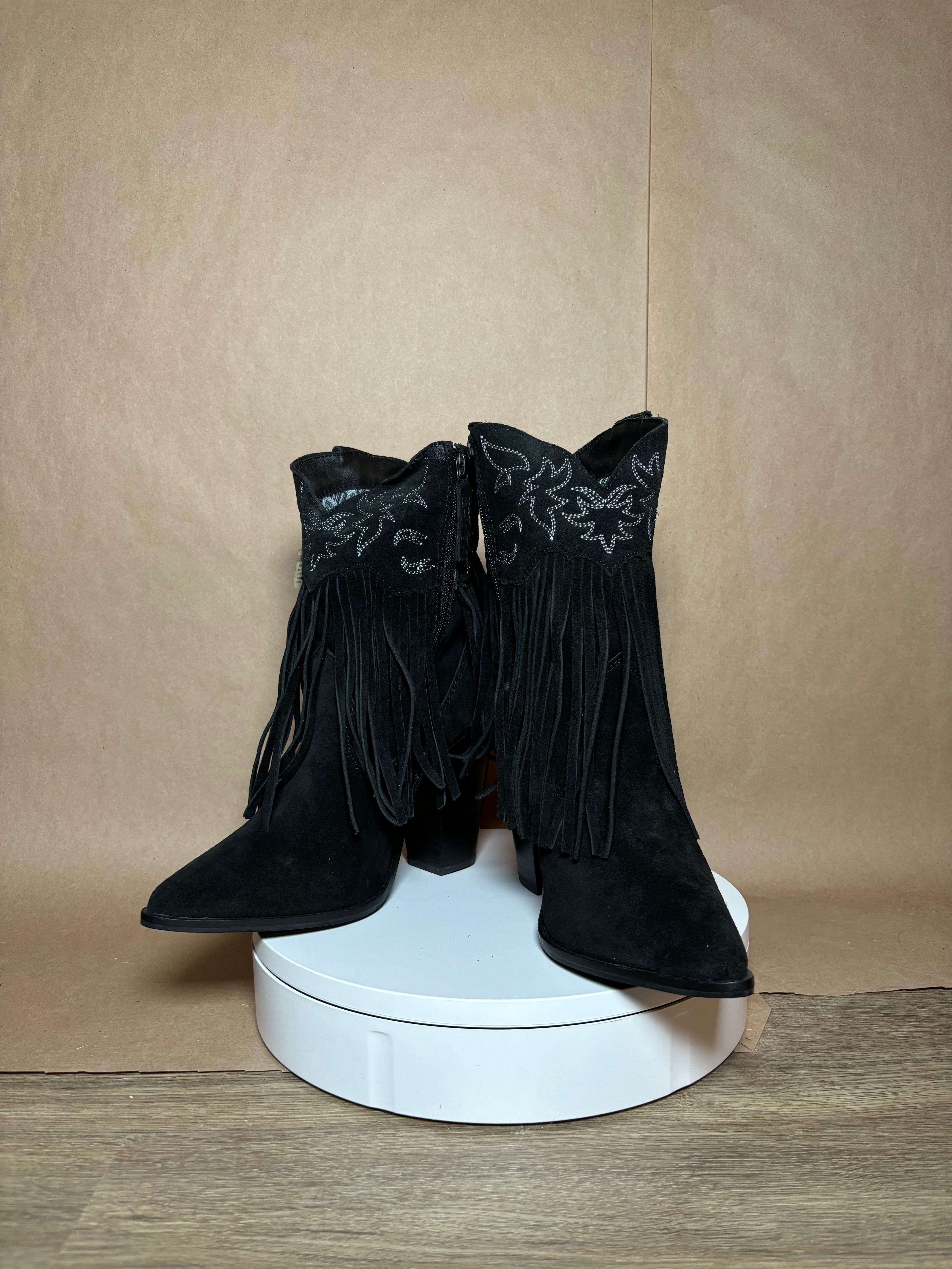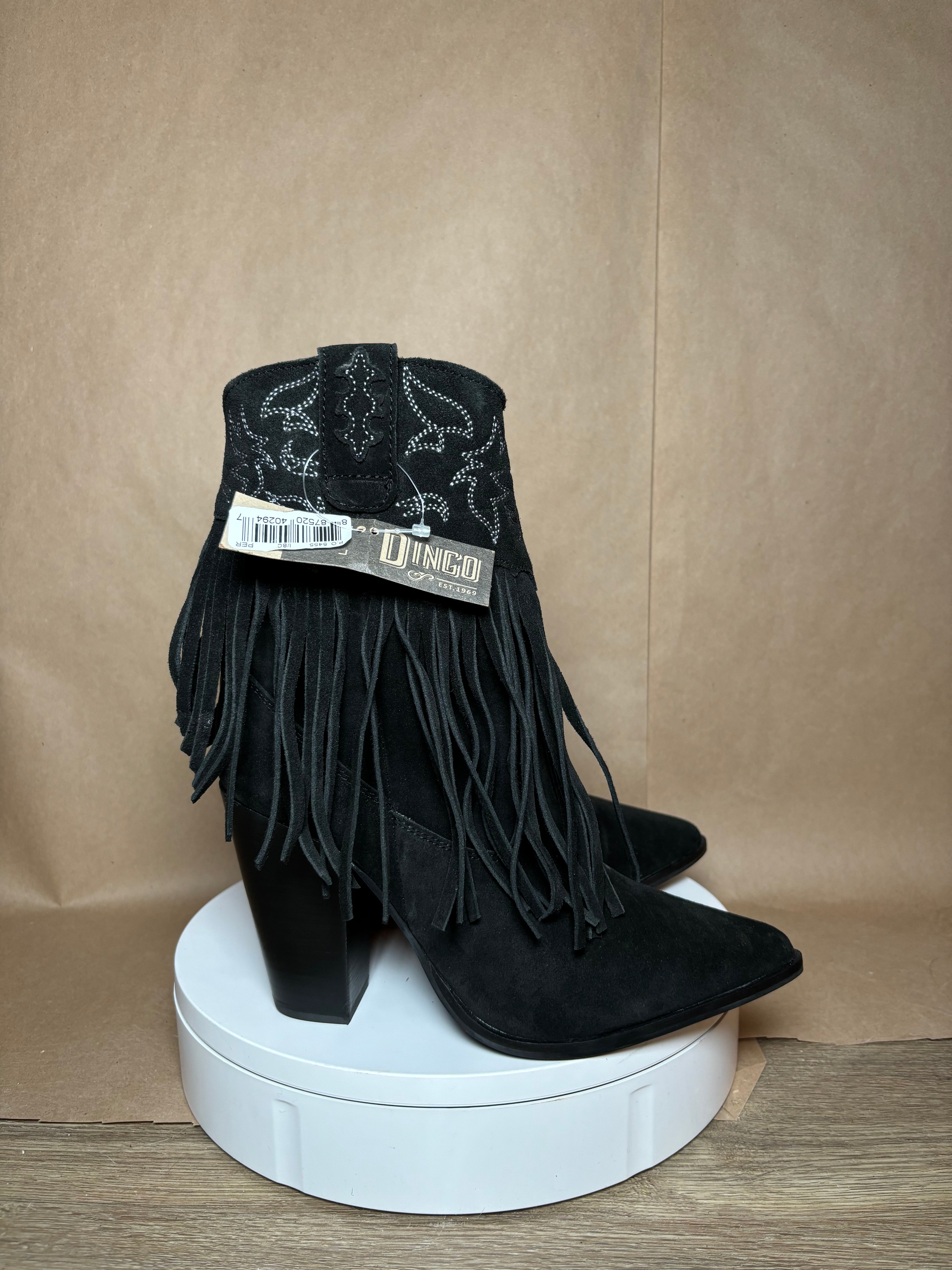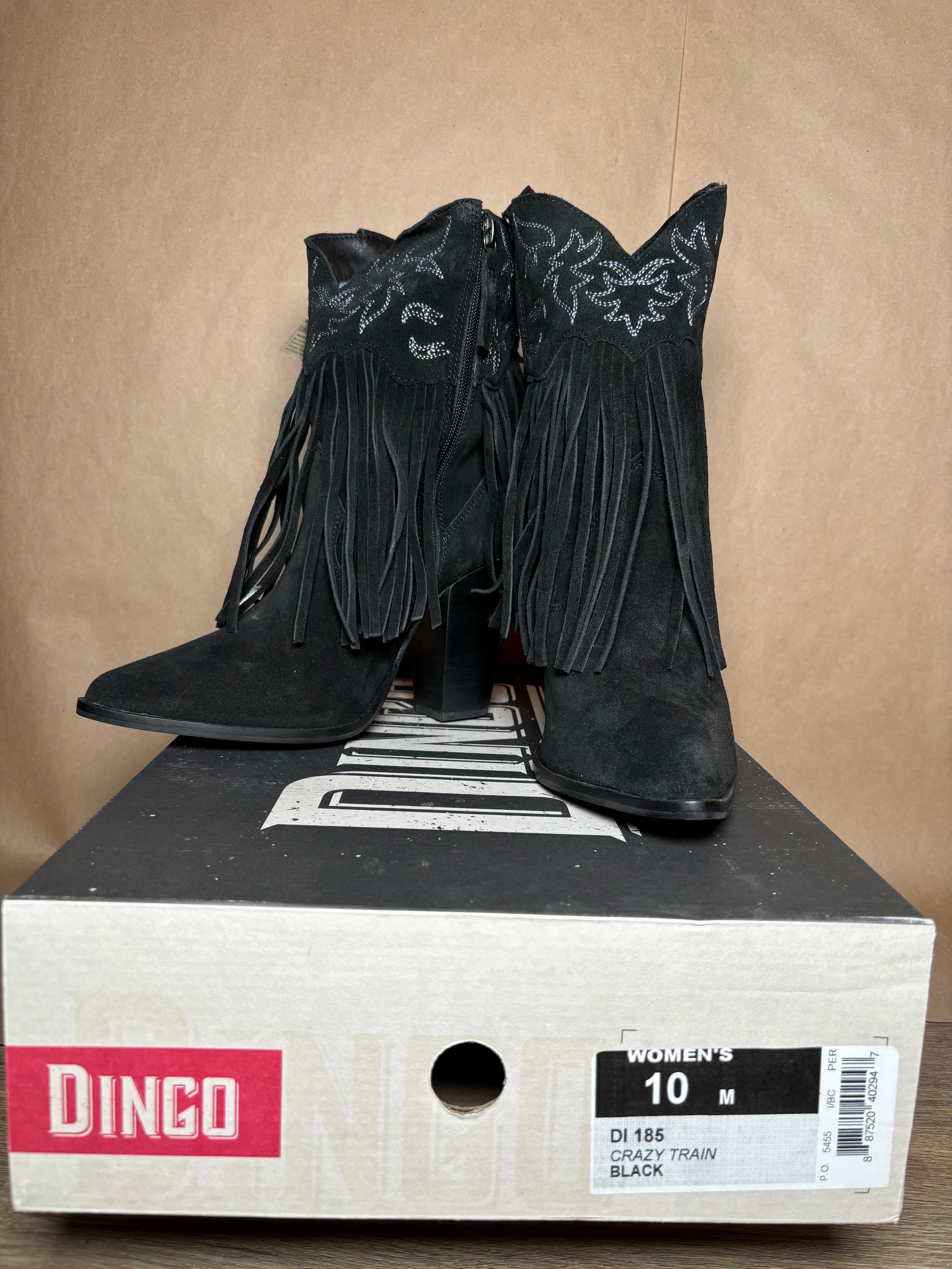 DINGO size 10 crazy Train Black Fringe boots NEW IN BOX -